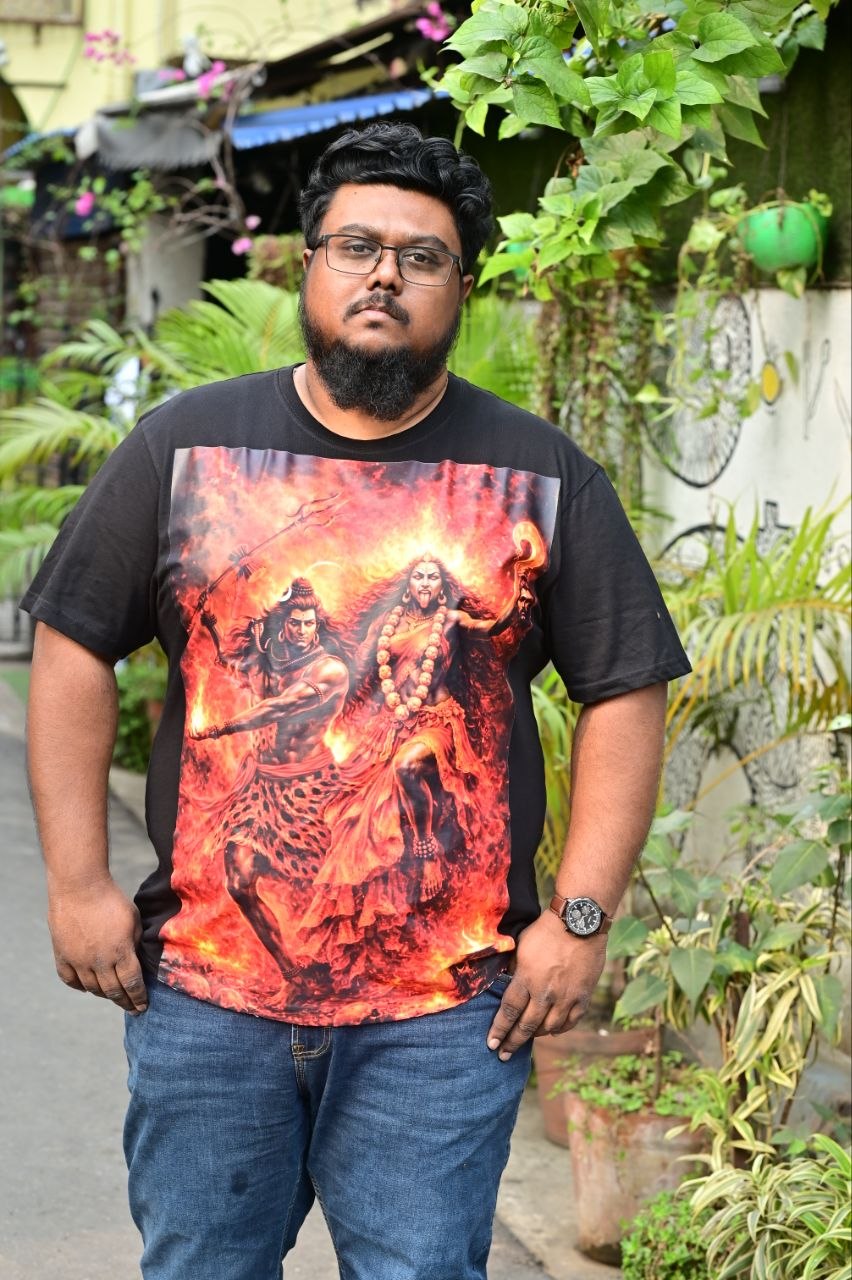Set on a crisp white base, this tee features a high-impact fiery artwork inspired by Lord Shiva and Goddess Kali, capturing the intensity of the cosmic dance — the Tandav. The blazing reds and deep shadows create a powerful visual, symbolizing creation through destruction and the unstoppable force of divine energy.