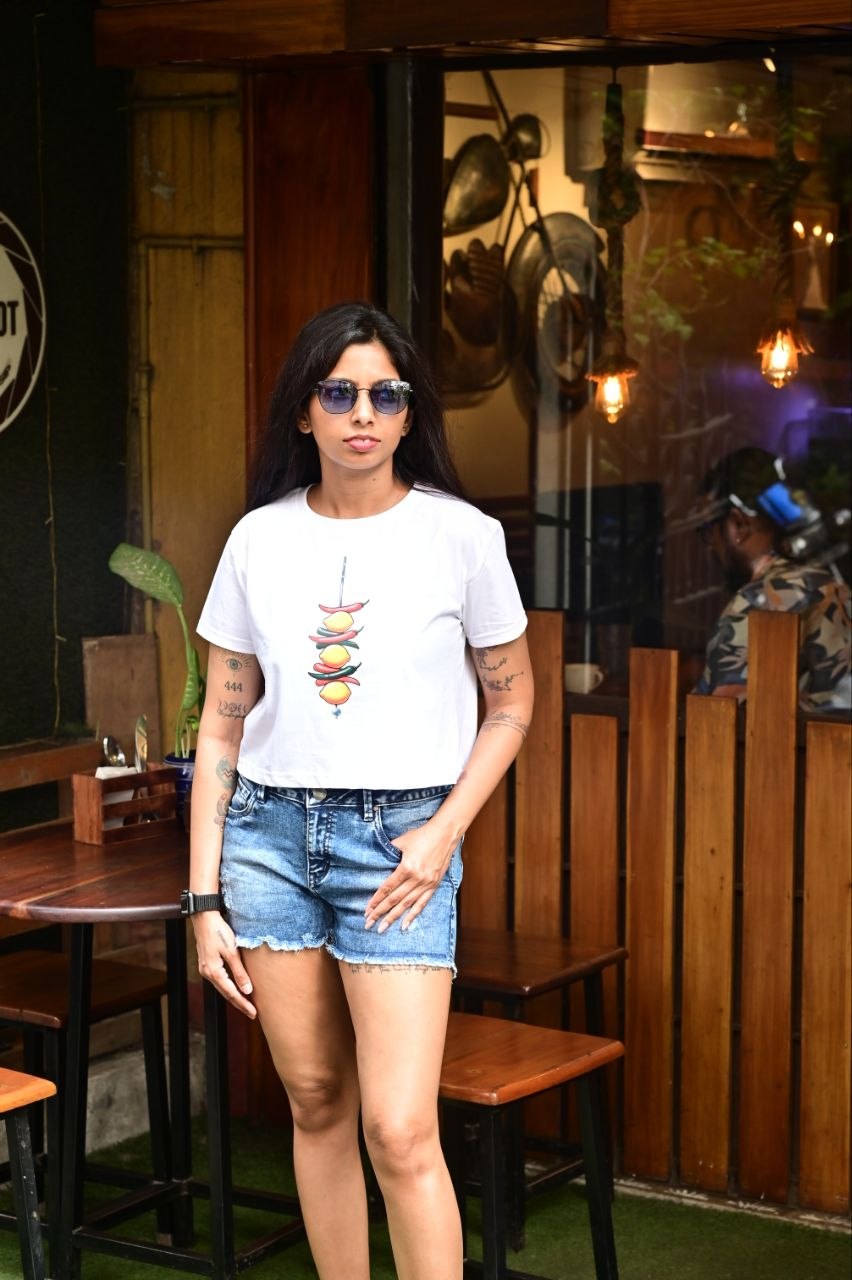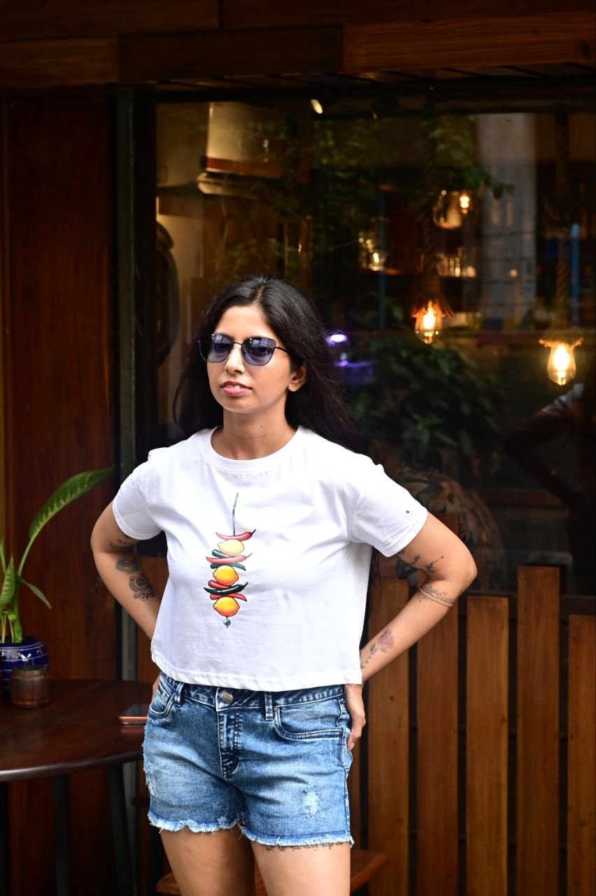 Add a bold twist to your everyday style with our Spice Story Statement Crop Top—a perfect blend of playful design and expressive attitude. Featuring a quirky chilli-inspired graphic on the front and a striking typographic statement on the back, this piece is designed to stand out from every angle.