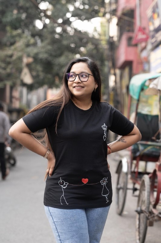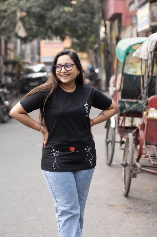 Pair it with denims or neutrals for a clean, coordinated look — perfect for casual outings, travel, or couple photoshoots